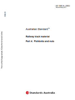 This Standards Australia brand Australian Standard ® specifies requirements for steel heat-treated, oval-necked fishbolts and nuts for use with steel rails in accordance with AS 1085.1 and fishplates rolled in accordance with AS 1085.2.