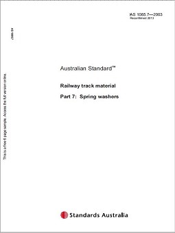 This Standards Australia brand Australian Standard ® specifies requirements for steel helical spring washers of single, double or triple configuration for use with screw spikes specified in AS 1085.18 and fishbolts and nuts specified in AS 1085.4 in railway permanent way.